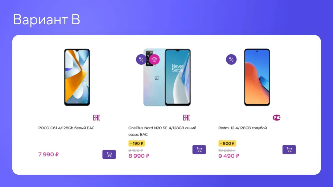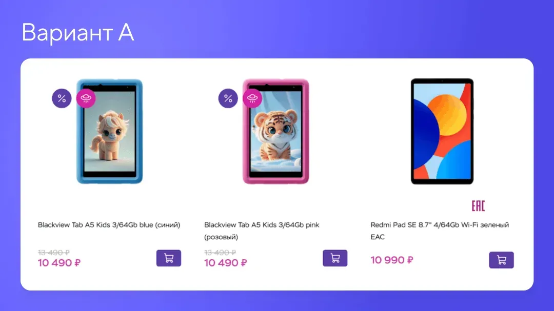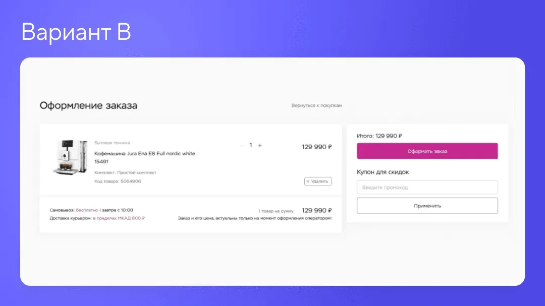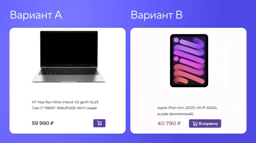 «Каждый месяц мы проводим 2-3 А/В-тестирования в зависимости от того, какие цели перед нами стоят прямо сейчас. Например, снизилась конверсия на корзине — значит в этом месяце будем экспериментировать с корзиной. За 8 месяцев мы провели 14 А/В-тестов, 3 из которых были удачными и мы запустили их на весь трафик»
