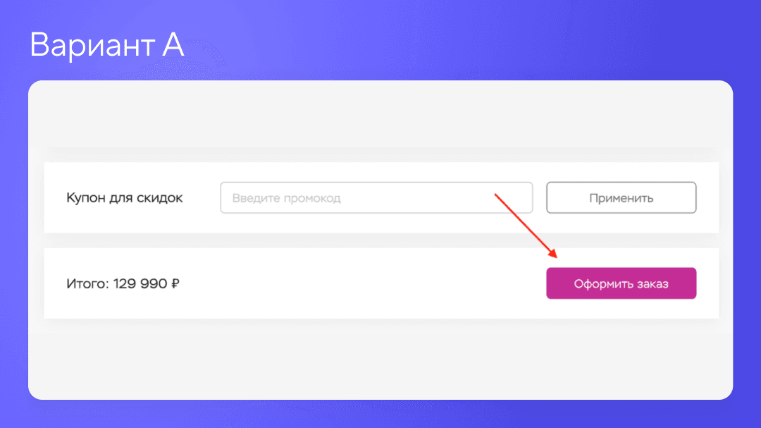 Место кнопки и поля для промокода