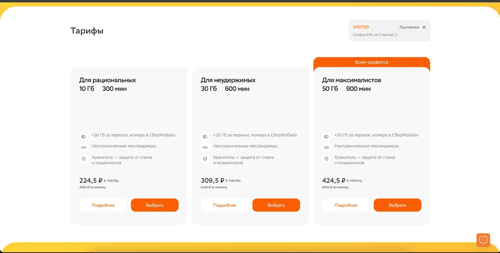 Выделение самых популярных тарифов шильдиками может увеличить их востребованность за счёт эффекта социального доказательства