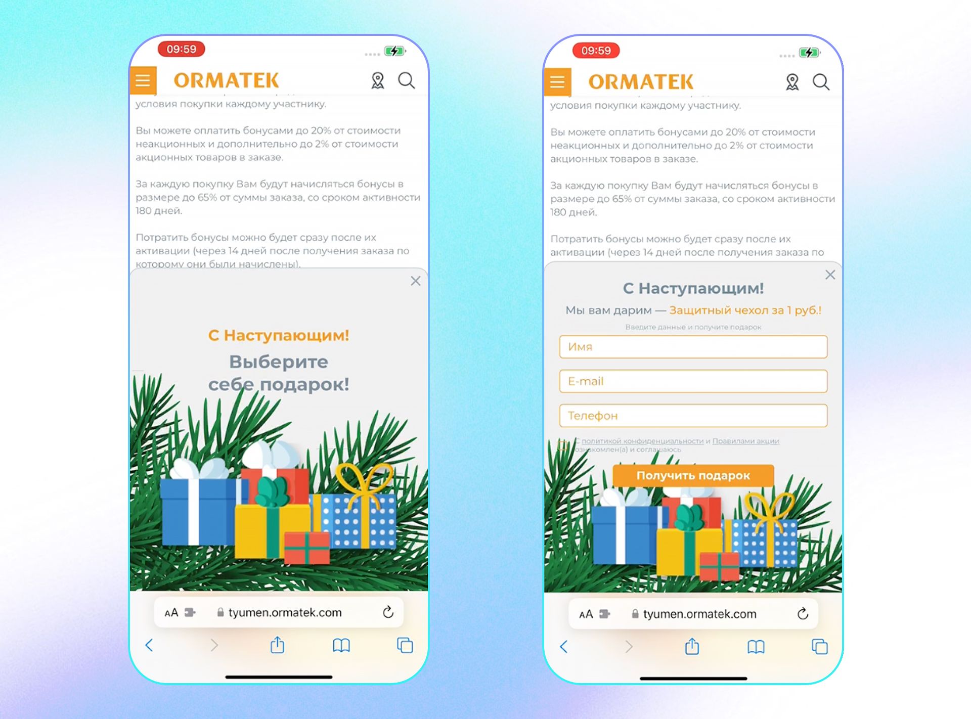 Еще одну механику геймификации партнер использовал перед Новым годом. Запустил виджет, который предлагал выбрать подарок под елкой. В подарочных коробках находились купоны на: