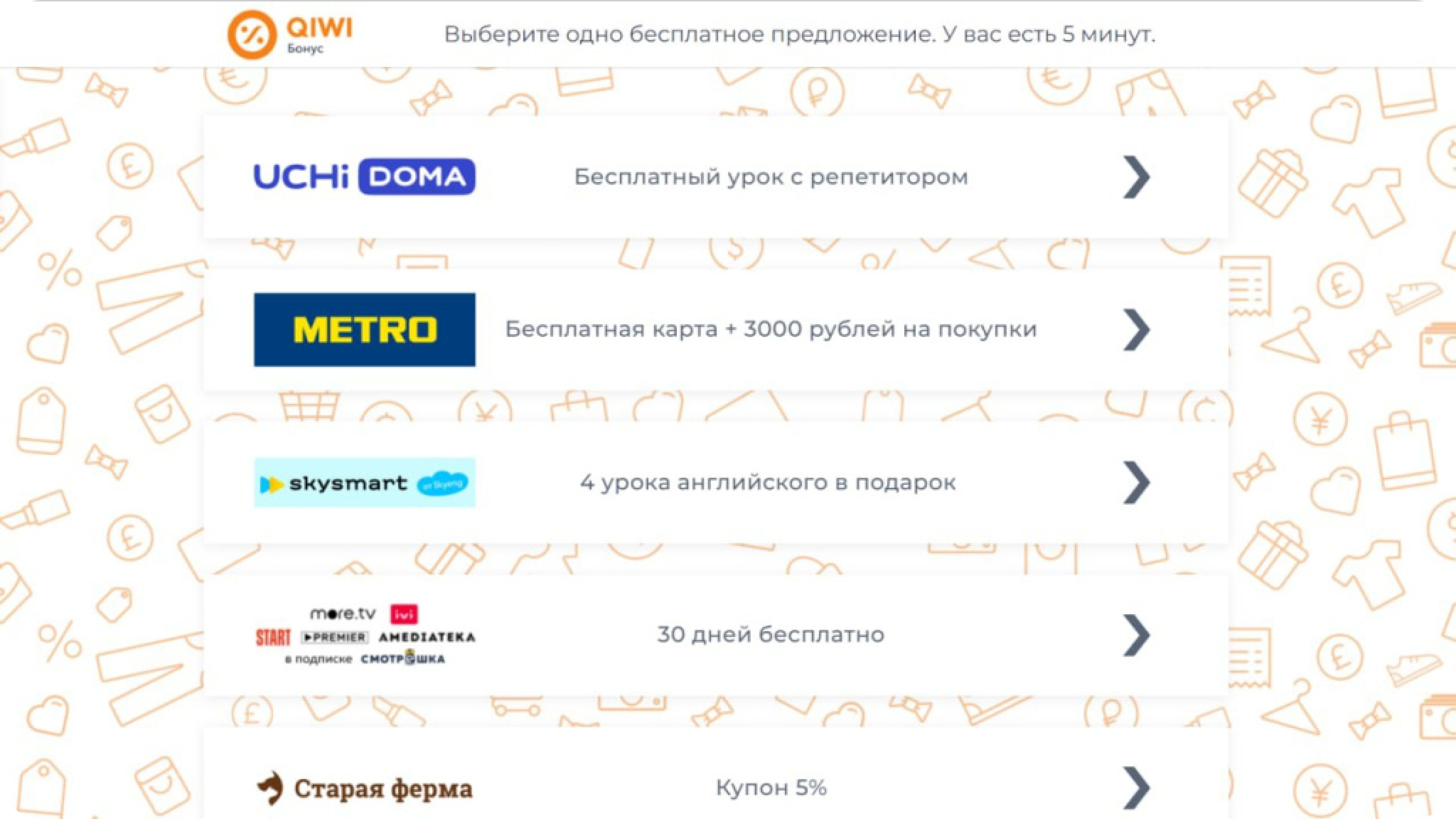 - последние совершённые покупки (приоритет по подобным мотивационным предложениям будет снижен);