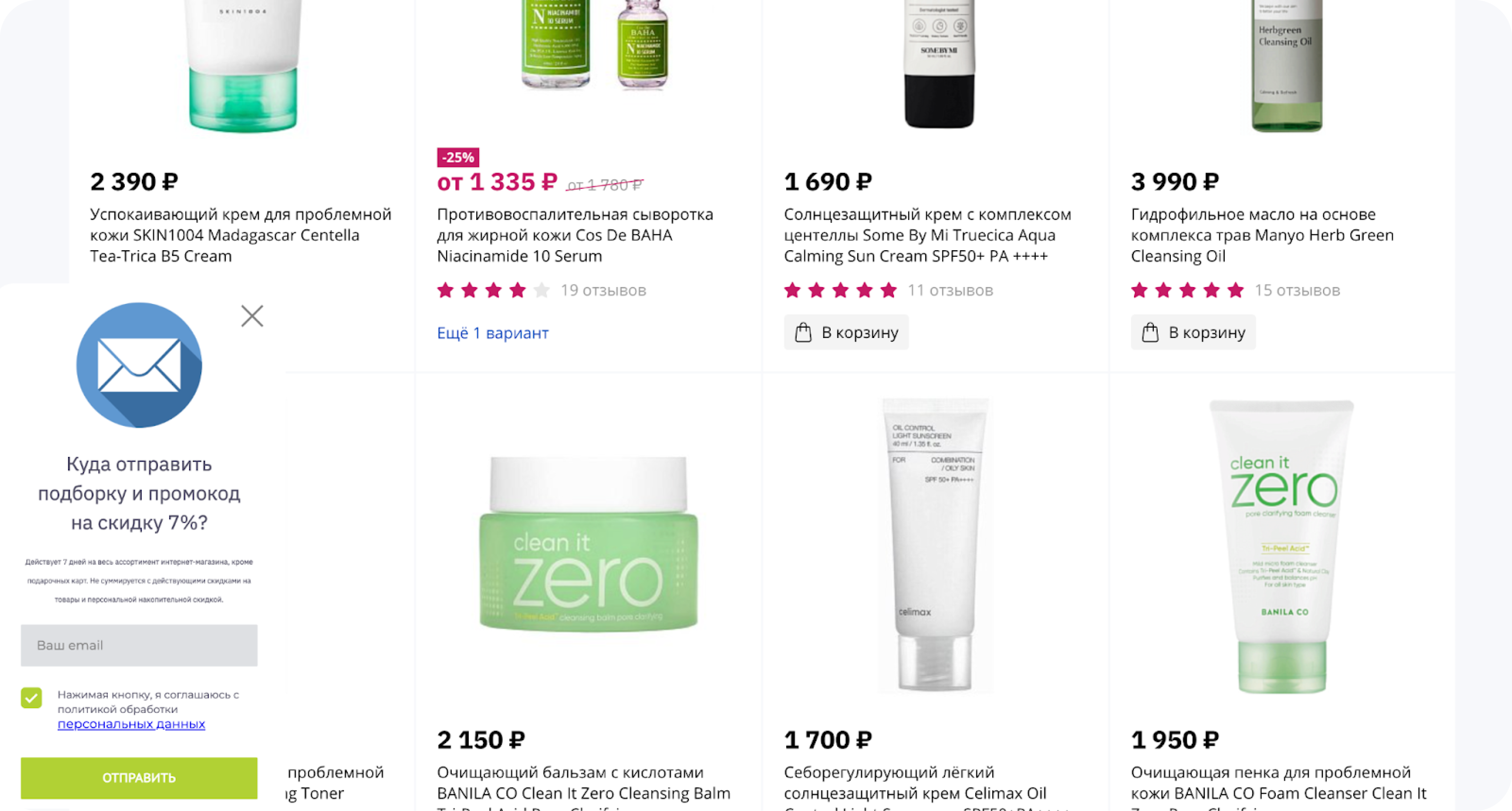 Такая механика помогала не только собирать лиды, но и повышать конверсию в заказ — с персонализированной подборкой средств и скидкой на нее вероятность покупки возрастала.