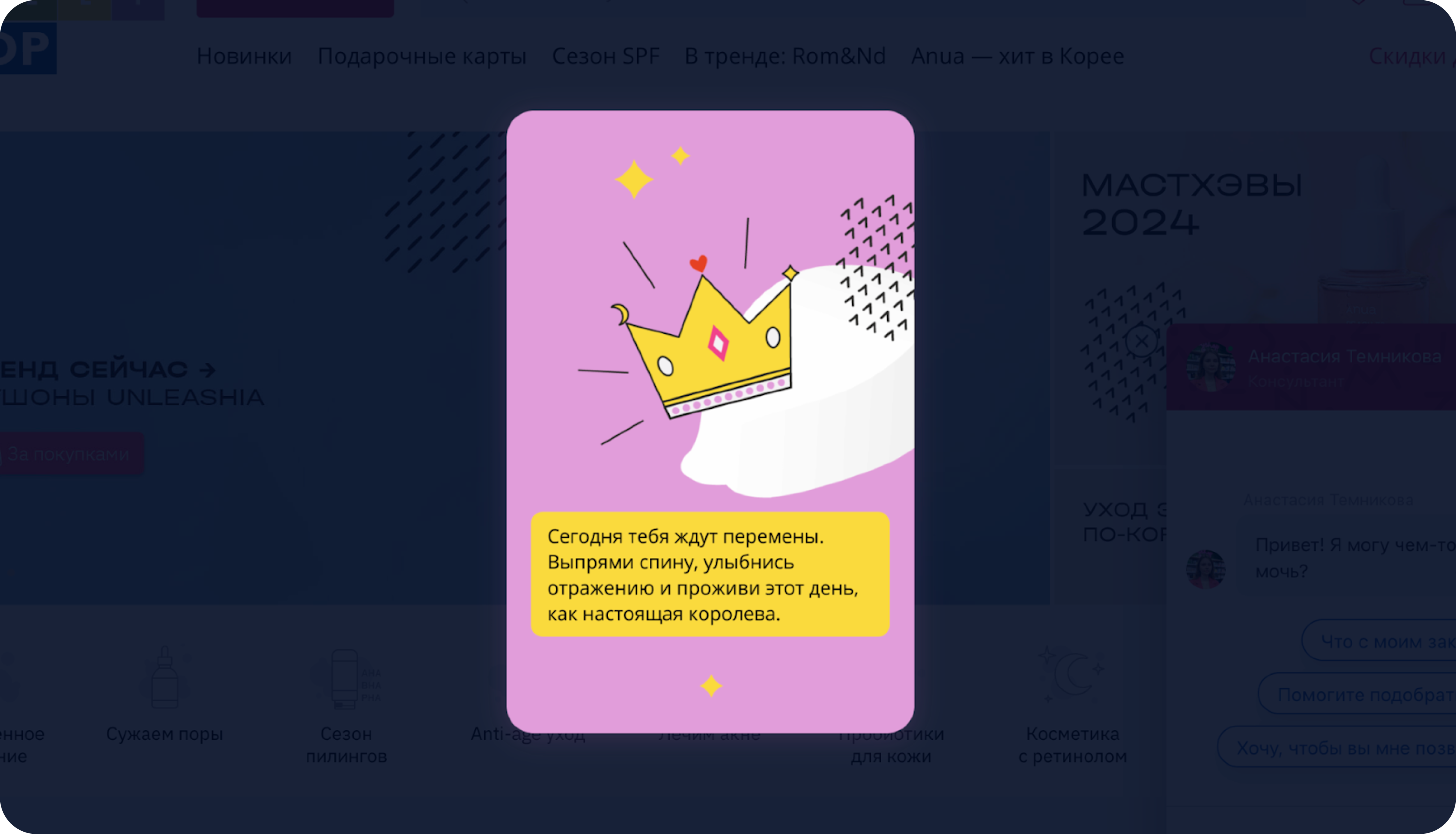 Мы давно сотрудничаем с Flocktory и знаем, что коллеги помогут решить любую маркетинговую задачу. В этом кейсе у нас были цели — оптимизировать лидогенерацию, сформировать лояльность новых клиентов и повысить ее уровень у действующих. В результате внедрение игровых элементов на сайте привело к расширению базы лидов и росту конверсии. Многоступенчатый опрос о типе кожи пользователей и сформированная на его основе подборка средств позволили поднять и без того высокую планку доверия клиентов к компании и персонализировать дальнейшее взаимодействие.