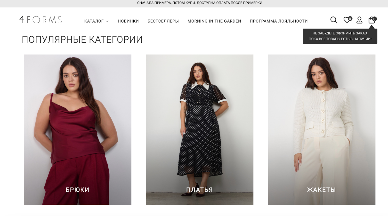 4FORMS — российский fashion-бренд с размерным рядом для женщин plus-size, которые хотят чувствовать себя стильными и женственными. Бренд создает одежду в размерах 46-68, которая подчеркивает форму, а не скрывает ее.