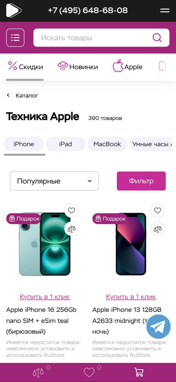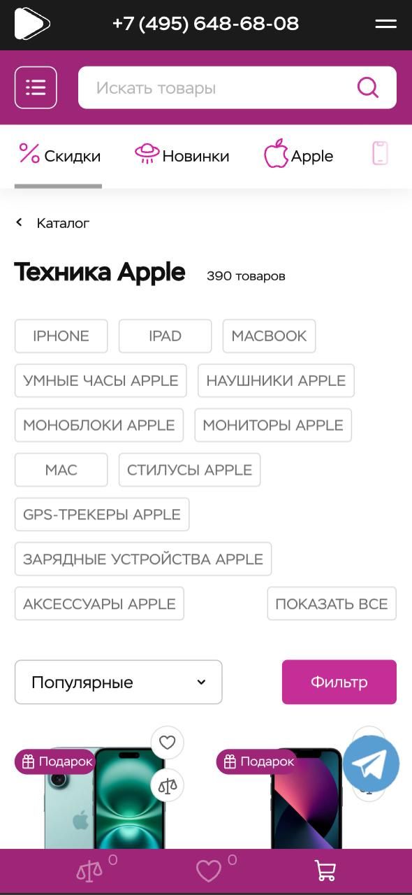Значительная часть пользователей, которая заходила на сайт магазина с мобильных устройств, попадала на страницу той или иной товарной категории (например, «техника Apple»).