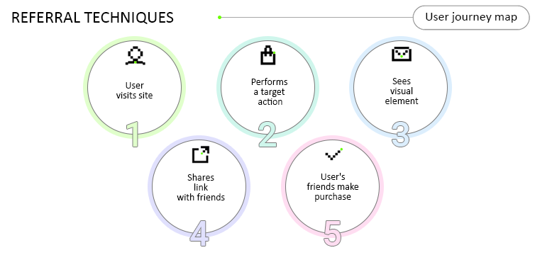The user performs a target action — such as a purchase — on the site, and the system offers them a reward for telling others about their purchase, the company, or the product